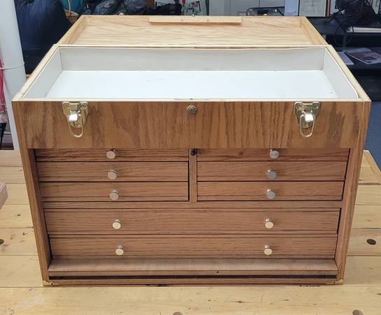 2 Beautiful Handcrafted engineers boxes with Oak hardwood construction. Locking. $50 each